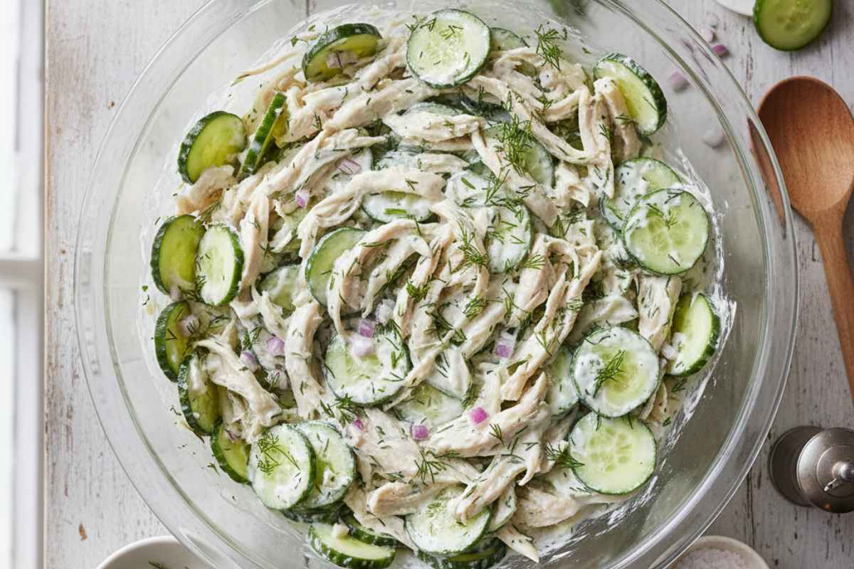 Think deli-meets-mediterranean: cool cucumber, red onion, and fresh dill folded into a tangy yogurt dressing. It’s refreshing, protein-forward, and perfect for warm days when you still want something satisfying.
