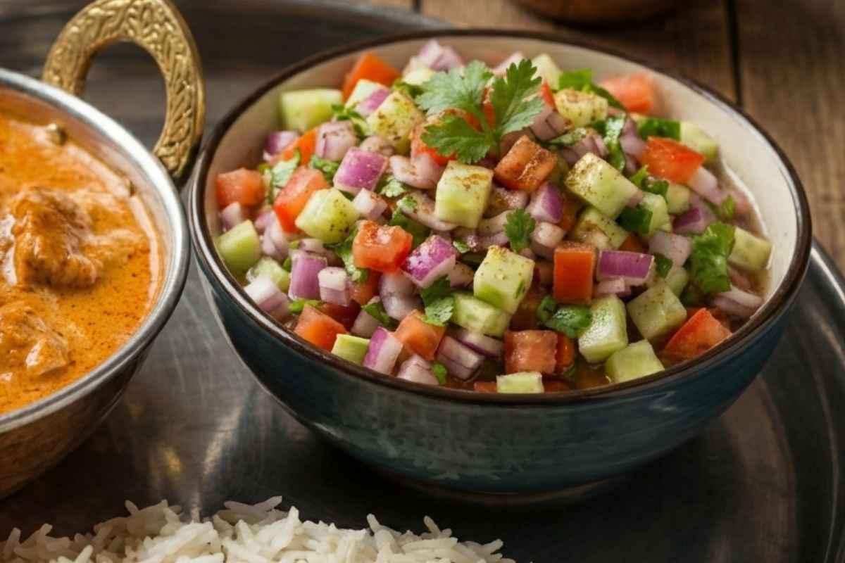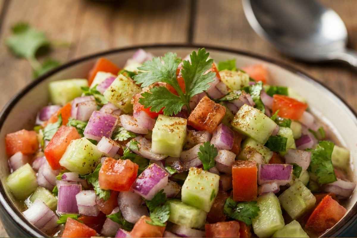 Kachumber is a bright, no-cook salad of cucumber, tomatoes, onions, and herbs. Its secret is in the small dice and a bracing squeeze of lemon that wakes up the whole plate.