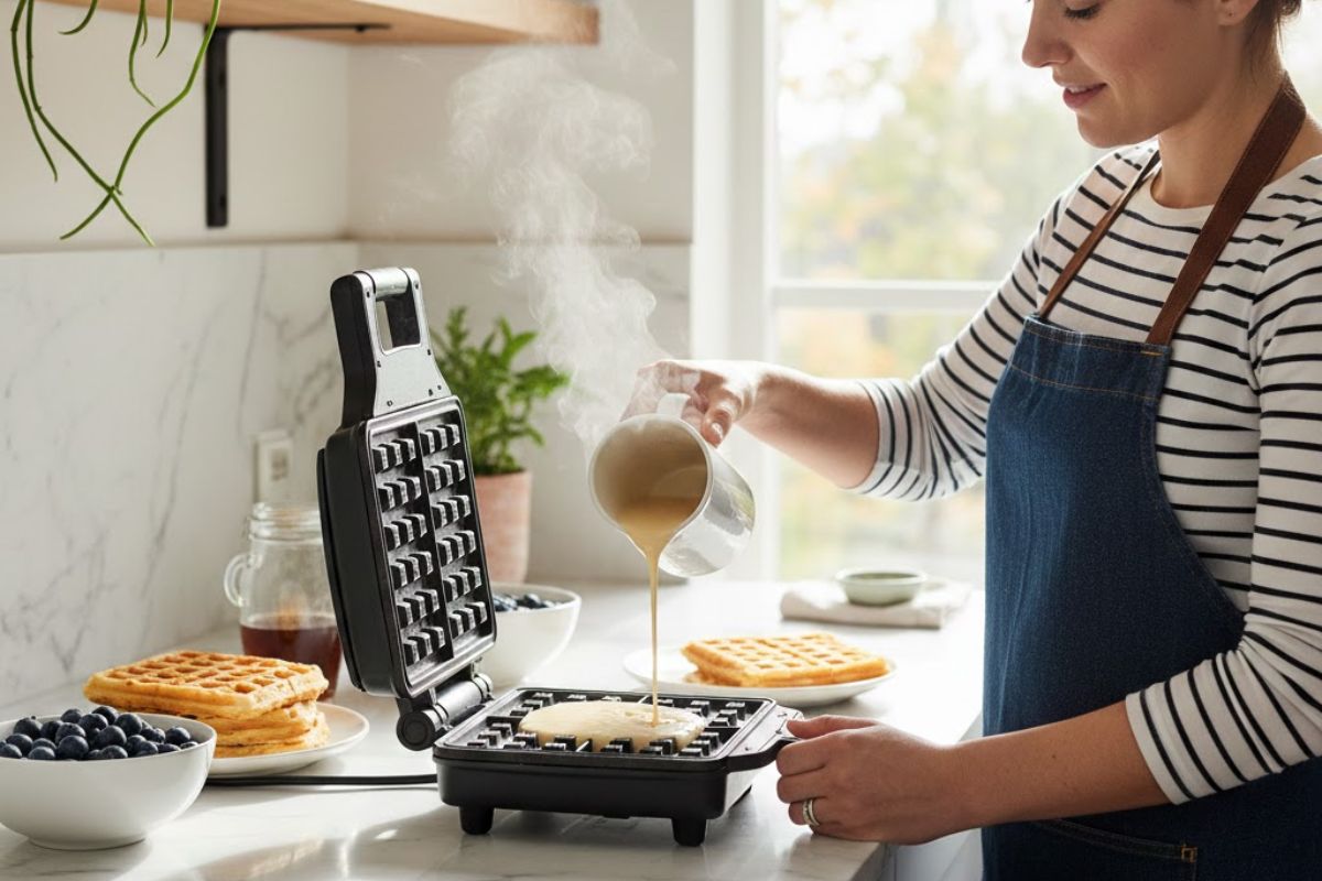 Classic irons give more surface area—ideal for crunch. Either works; focus on heat control and even batter spread for consistent Waffles Recipe Crispy.