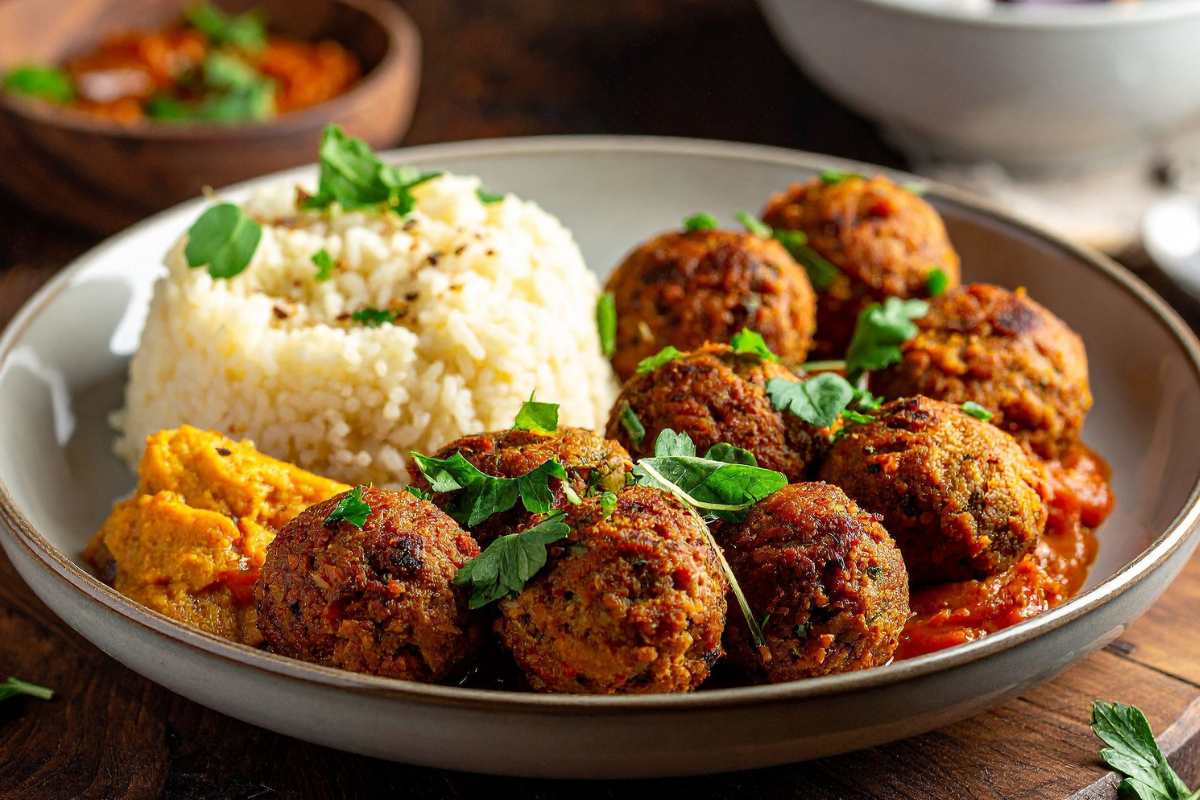How to make: Mix turkey with grated onion, garlic, parsley, oregano, lemon zest, and breadcrumbs. Bake on a sheet pan until just cooked. Toss with olive oil, more lemon, and a sprinkle of dill. Serve over rice with cucumber-tomato salad and a spoon of yogurt.