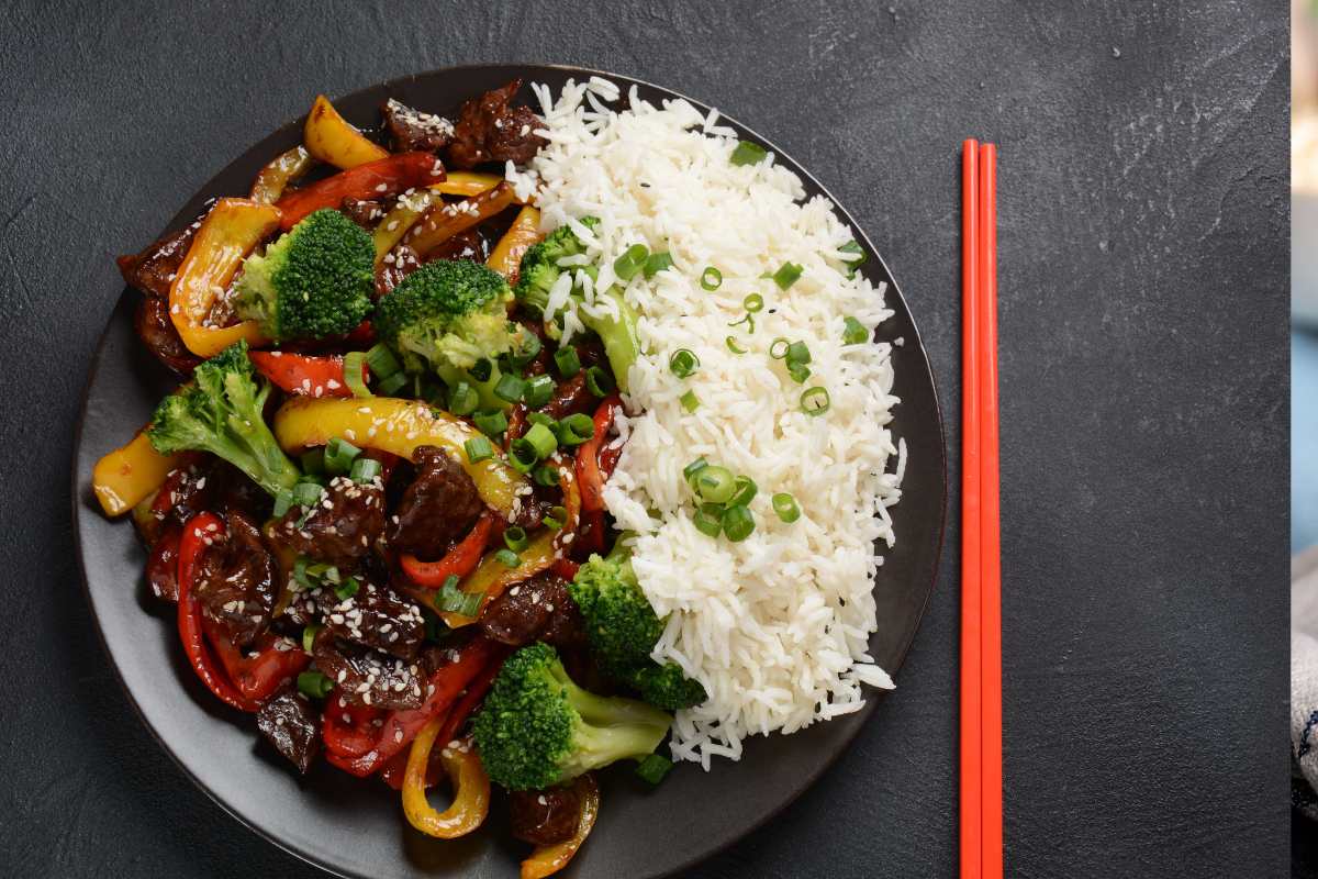 How to make: Sauté turkey until browned; add ginger and garlic. Stir in bell pepper, snap peas, and carrots. Splash with soy sauce and rice vinegar, finish with sesame oil. Serve over steamed rice; add chili crisp if you like heat.