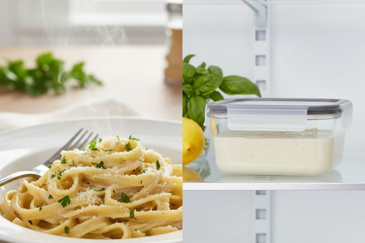 Alfredo is best fresh, but you can refrigerate sauce up to 3 days. Reheat gently over low heat with a splash of milk or pasta water to loosen. Avoid boiling, which can split dairy and turn cheese grainy.