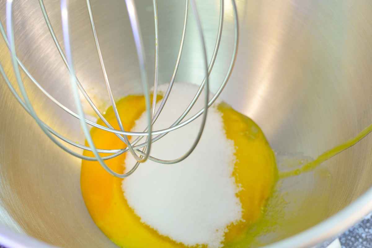 2) Whip the yolks with sugar