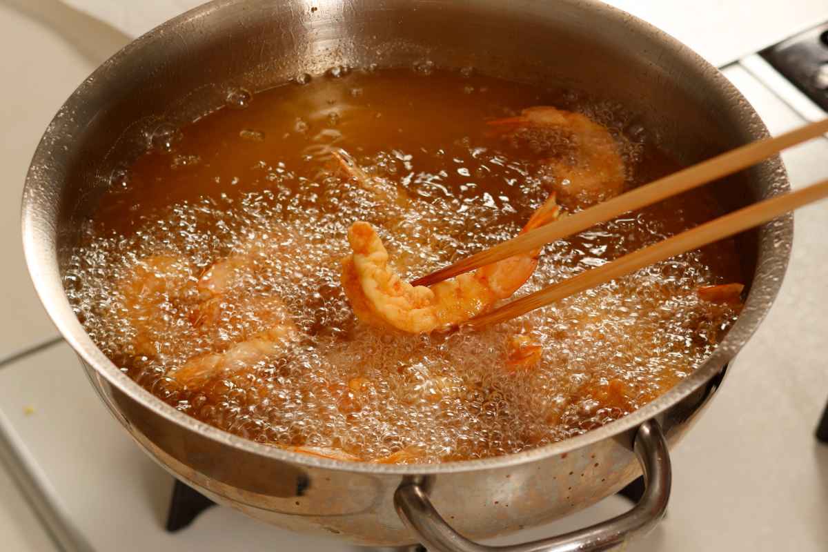 - Seafood: fry slightly hotter at 180 °C (356 °F).