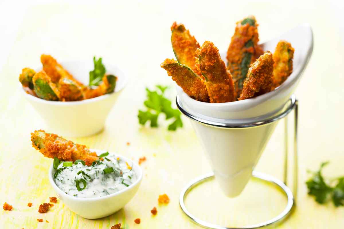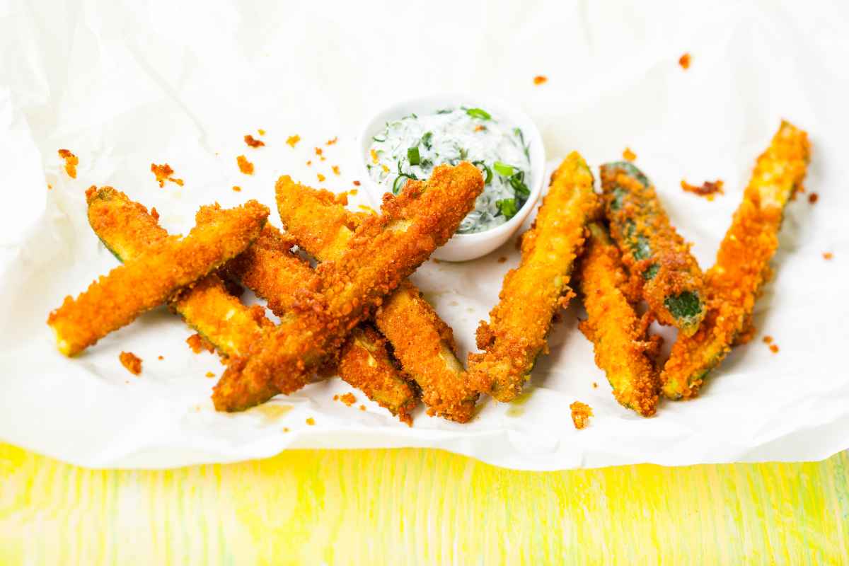 Try making a zucchini fry platter with a variety of dips for a party or gathering.