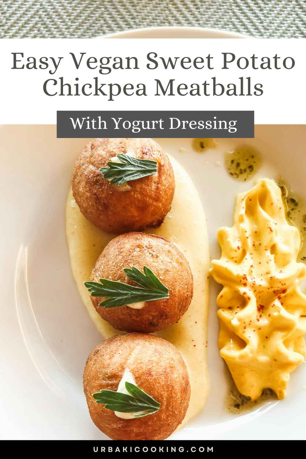 Easy Vegan Sweet Potato Chickpea Meatballs with Yogurt Dressing