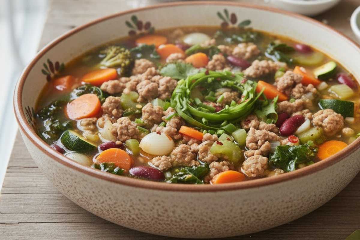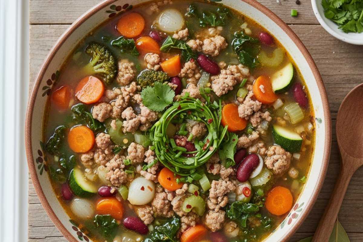 Lean turkey plus vegetables equals protein, fiber, and micronutrients in every bowl. Skim excess fat and season at the end for control. This approach sits at the heart of ground turkey recipes soup that deliver comfort with balance.