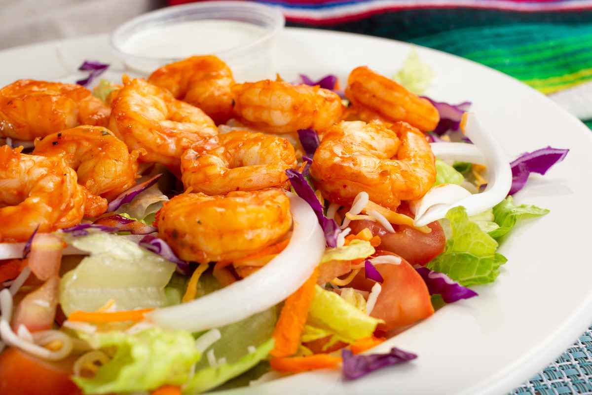 Shrimp is an excellent source of lean protein, while avocado delivers healthy fats that are good for your heart. Plus, the addition of fresh vegetables and a zesty dressing makes this salad refreshing and full of flavor.