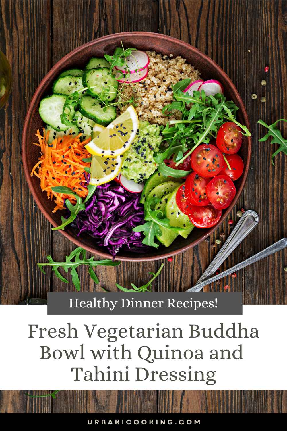 Healthy Dinner Recipes! Fresh Vegetarian Buddha Bowl with Quinoa and Tahini Dressing