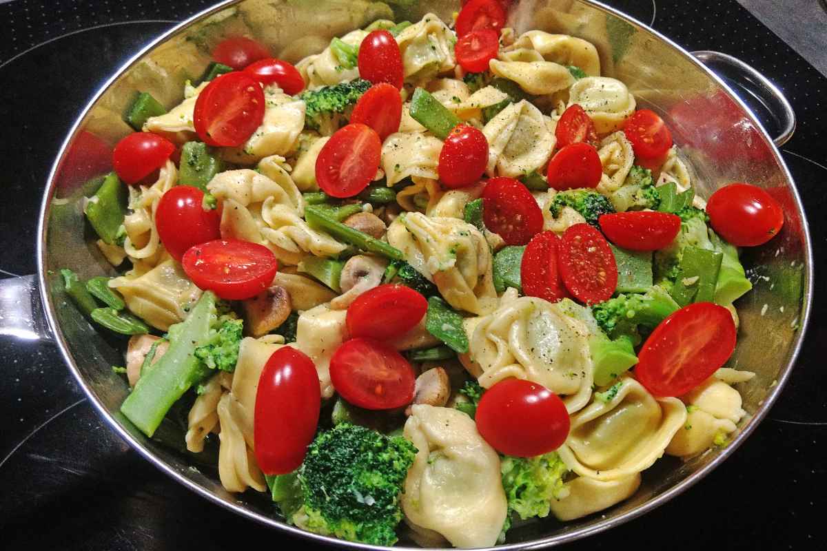 - Assemble: Toss the cooked tortellini with the chopped vegetables, herbs, and dressing. If you're using tofu or chickpeas for added protein, mix them in at this stage.